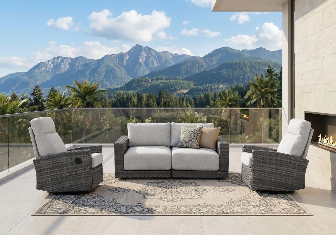 Extreme comfort with plush cushions. High-resilience foam and Outdoor-rated fabric. Max Weight Capacity 300lbs
