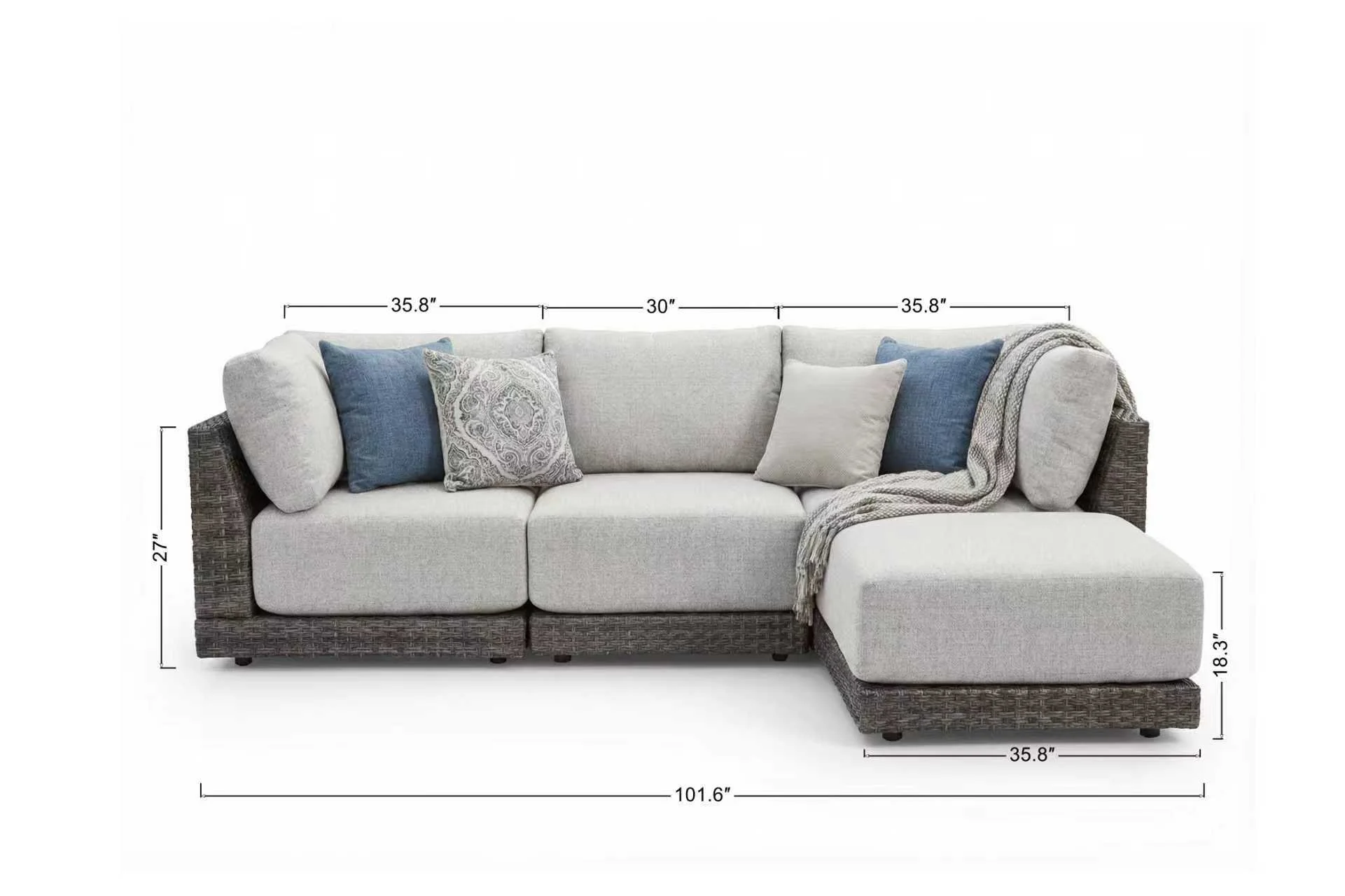 Enjoy the comfort of the Malibu, a modular sofa designed to offer both style and durability. Constructed with rust-proof aluminum frames and handwoven with all-weather resin wicker, it is built to withstand the elements.